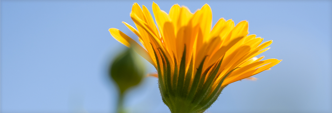 トウキンセンカ(唐金盞花)は、「カレンデュラ」や「ポット・マリーゴールド」とも呼ばれるキク科の植物。“唐の国の金の盃(盞)の花”という名のとおり、濃い黄色や橙色の花が、盃のように上を向いて咲く姿が特徴です。